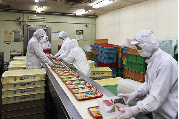 シントミフーズ株式会社甲府支店は、法人様向け産業給食を主要業務に幼稚園・保育園給食、仕出し及び米飯加工委託等を、衛生管理の行き届いた最新鋭給食調理工場で安心の産直食材による味にこだわったメニューづくりでお応えしています。